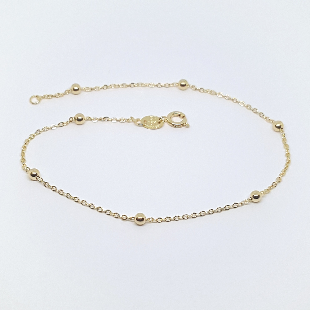 1-0061-h2 Gold Filled Beaded Rolo Link Anklet