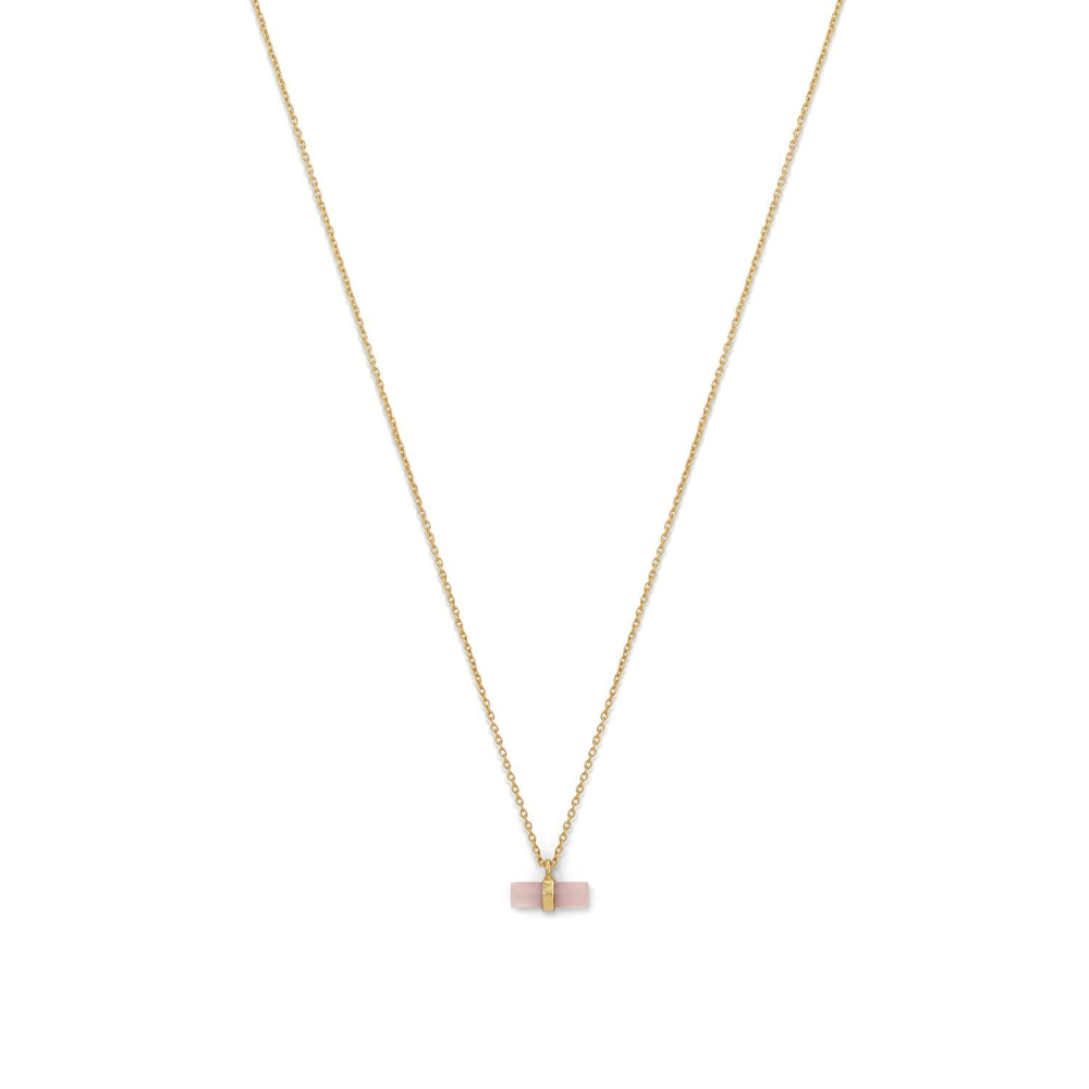 14 Karat Gold Plated Pencil Cut Rose Quartz Necklace