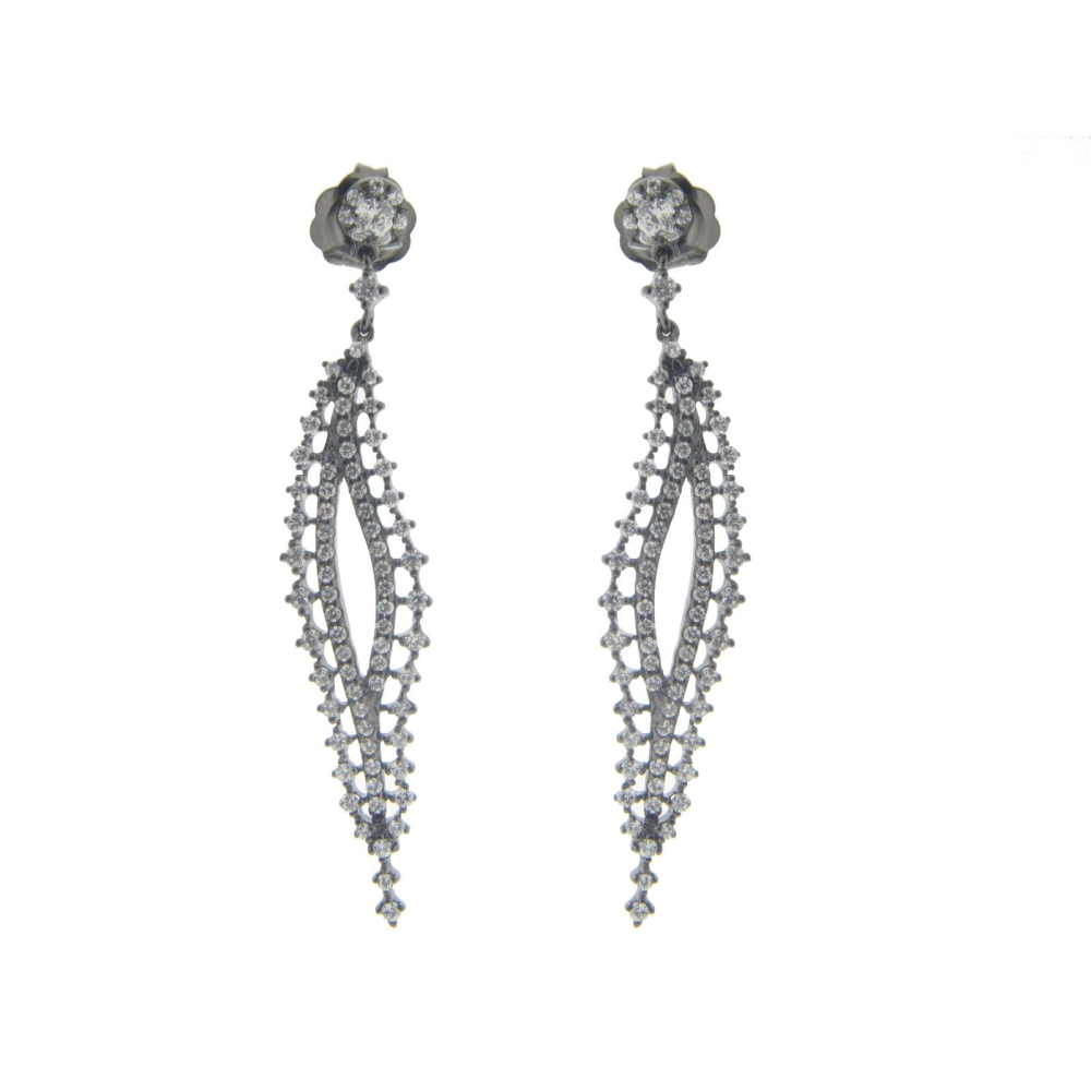 Glamour Bridal Feather Earrings Black Rhodium Sterling Silver, 2.63"