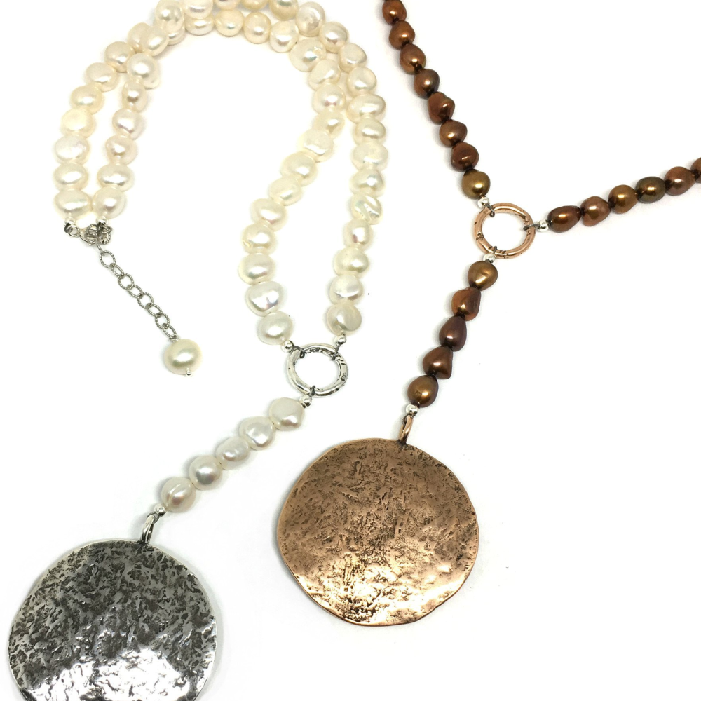 Materials: sterling silver, ancient bronze, freshwater pearls
