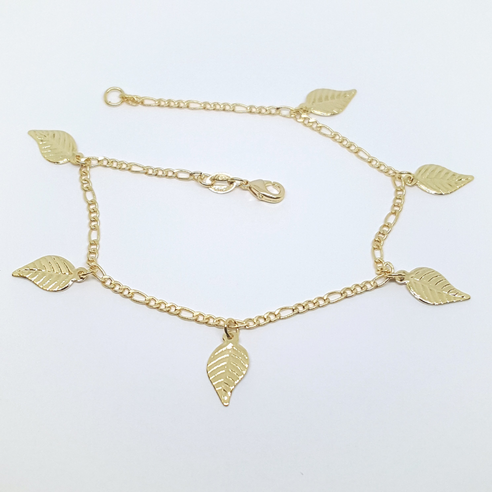 1-0149-h2 Gold Overlay Leaf Charms Anklet