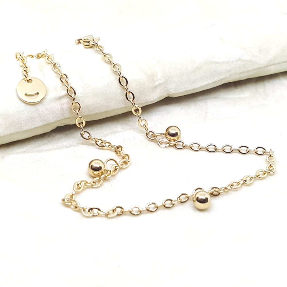 4-3307-h2 Gold Plated over Steel Ball Charms Anklet.