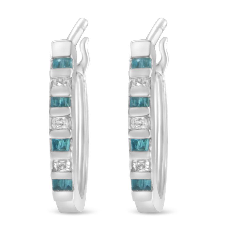 10K White Gold .25ct TDW Treated Blue Diamond Hoop Earrings (I-J,I2-I3)