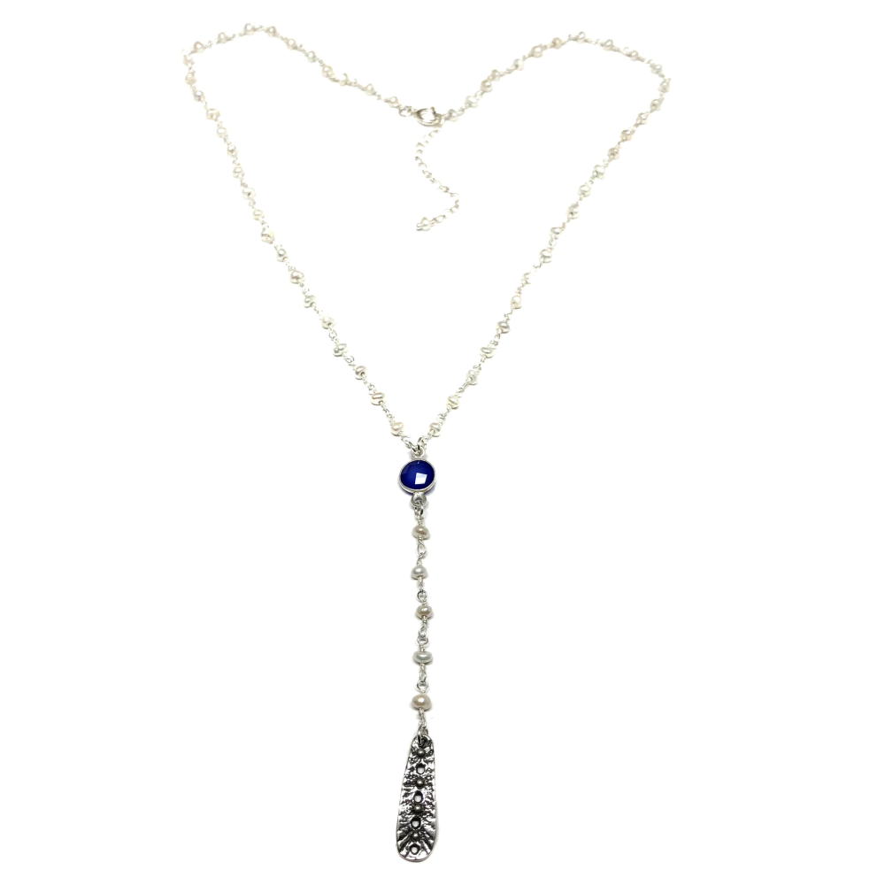 Materials: sterling silver, blue onyx, freshwater pearls