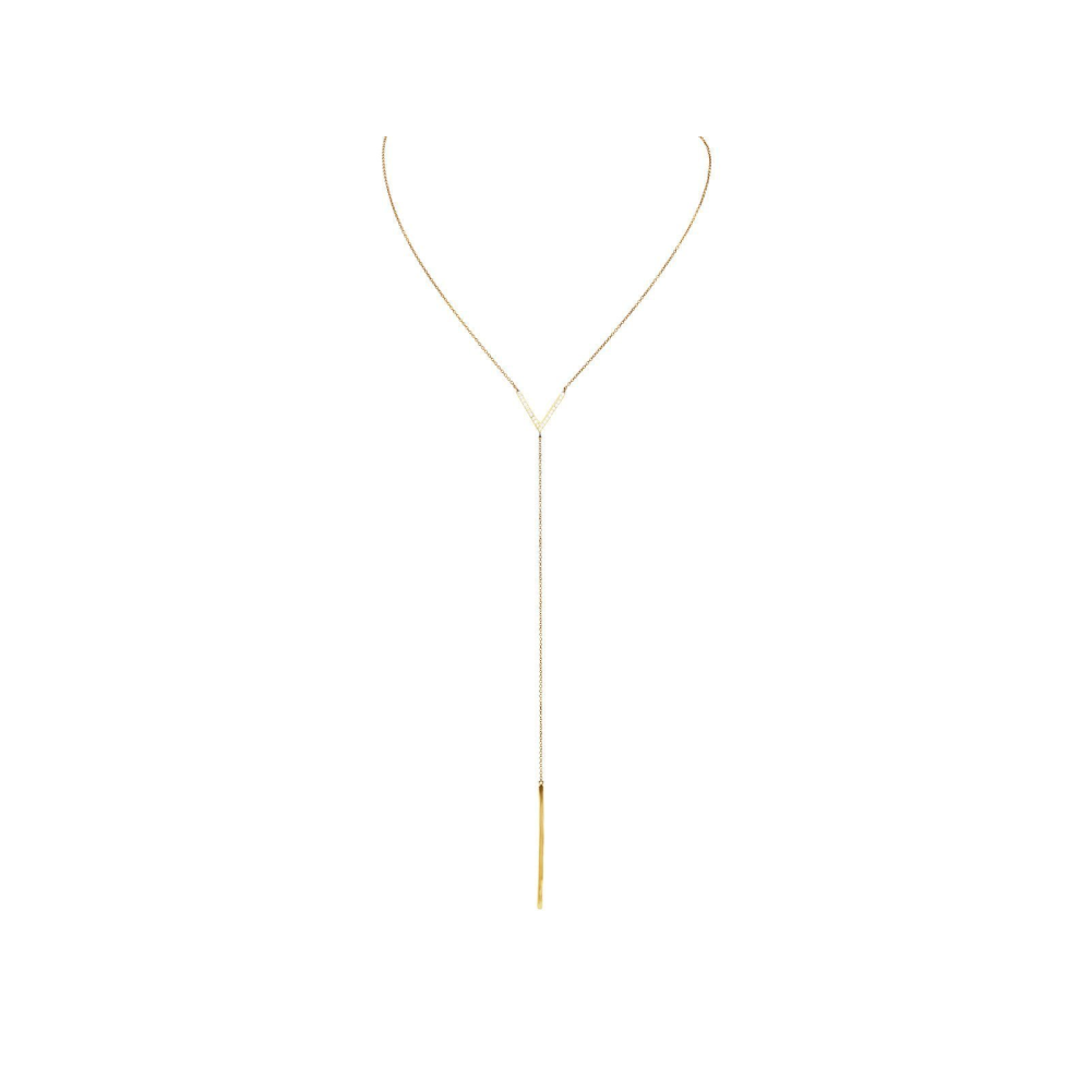 V Necklace Bar Lariat in 18k Gold Plated Silver, Length: 20"+2"