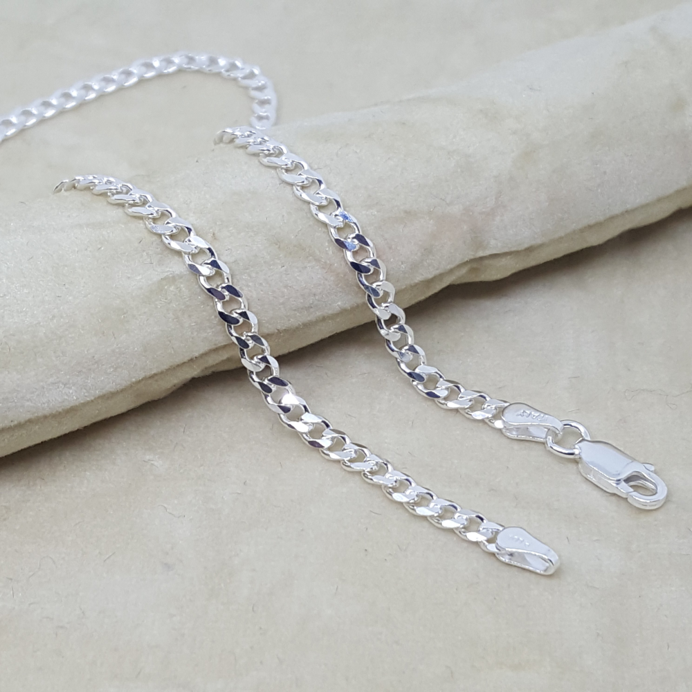 2-0107-h1 Sterling Silver Cuban Link Anklet. 3mm, 10".