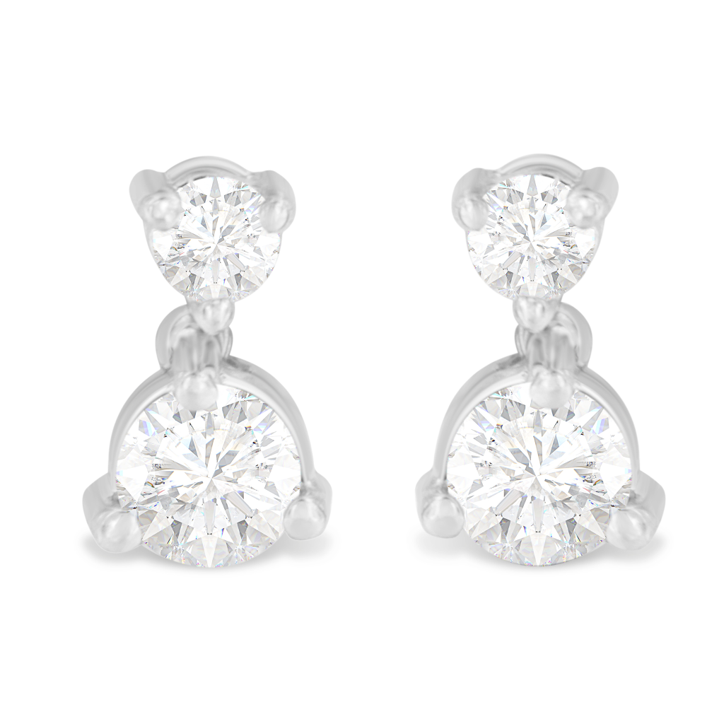 14K White Gold 0.75 CTTW Double Diamond Drop Stud Earrings (H-I, I1-I2)