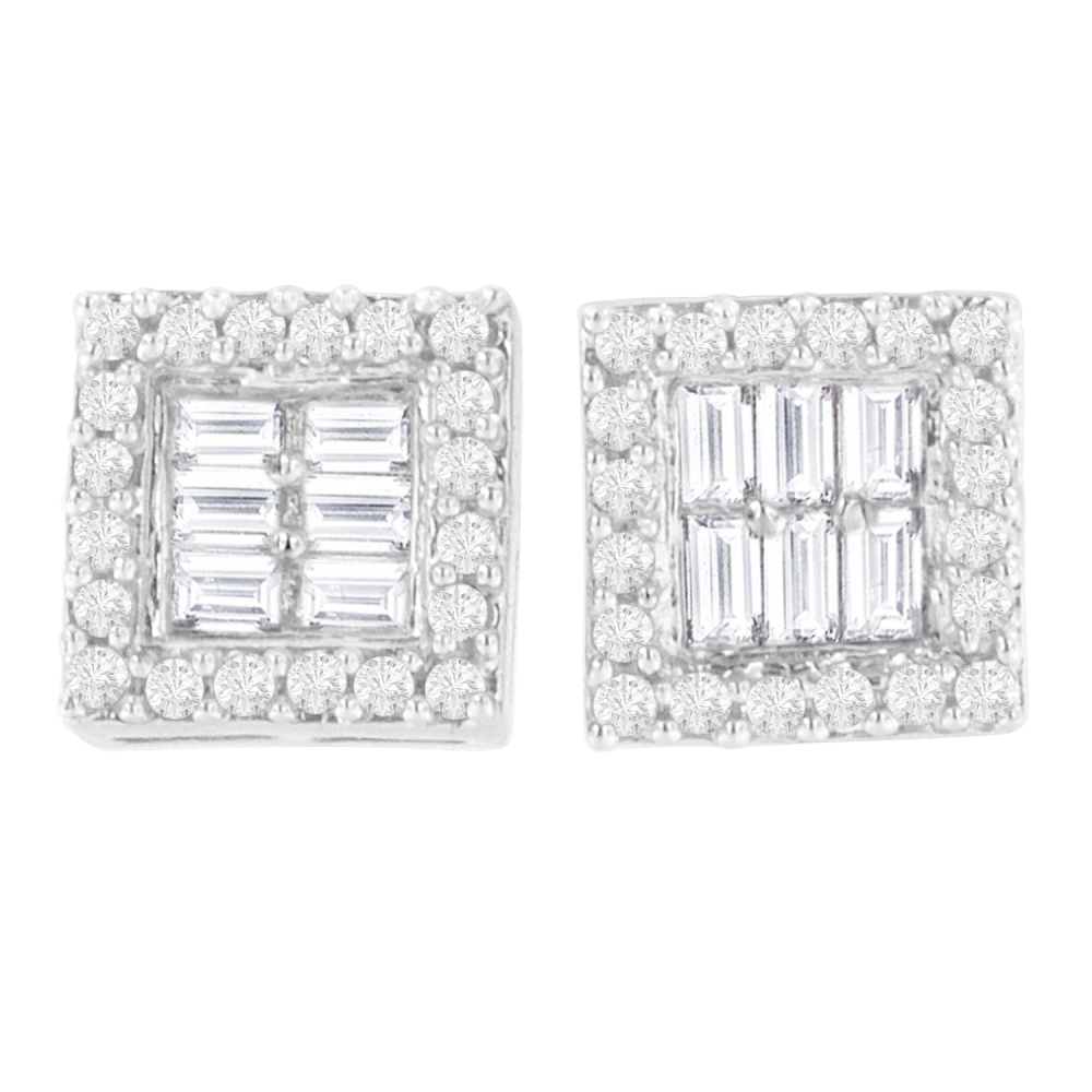14k White Gold 1ct TDW Round and Baguette Diamond Stud Earrings(H-I,SI1-SI2)
