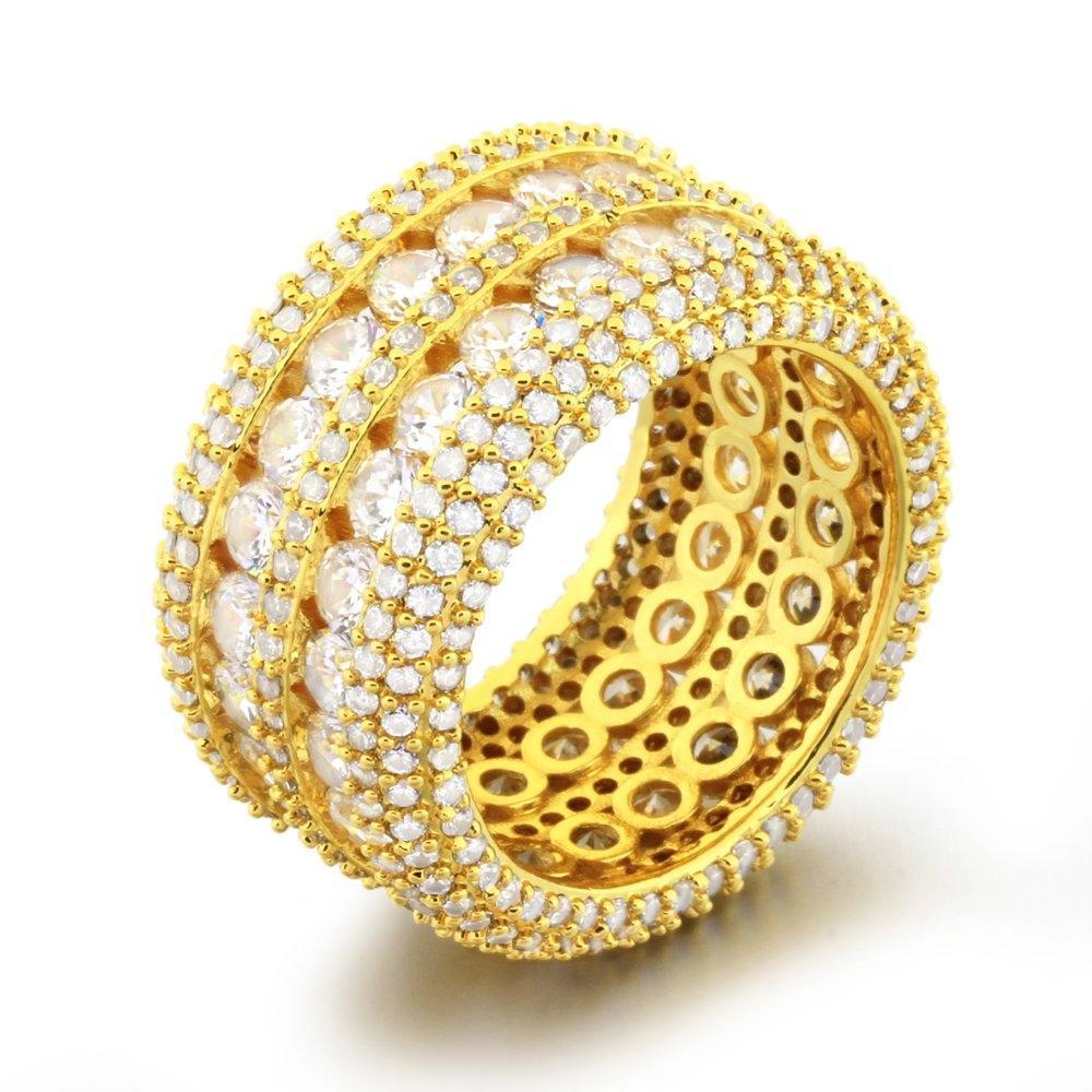 .925 Silver Ultimate Boss Bling Bling CZ Eternity Mens Ring in Gold